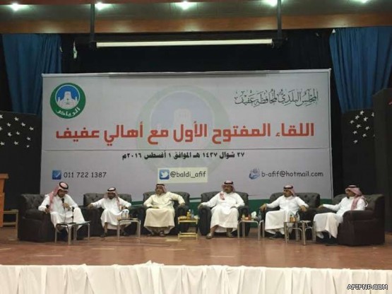 عقد المجلس البلدي بمحافظة عفيف لقاءه مع الأهالي يوم الثلاثاء الماضي بالمركز الحضاري بدون حضور الأهالي ، رغم حداثة المجلس البلدي ووعودهم التي أطلقوها في حملاتهم الإنتخابية .