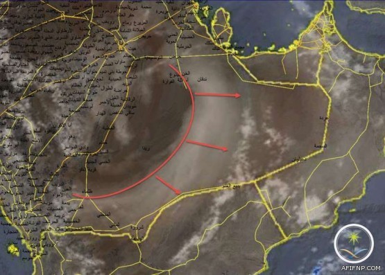 وفي وقت سابق قال النظام : يمتد تأثير العاصفة الغبارية جنوب الشرقية والرياض، والربع الخالي ونجران وتتحرك جنوب شرق خلال الساعات القادمة.