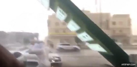 تداول مغردون على موقع “تويتر”، مقطع فيديو لمواطن تهشمت سيارته أمام عينيه بعد سقوط لوحة إعلانية عليها، وكادت أن تسقط فوقه لولا انتباهه في اللحظة الأخيرة.