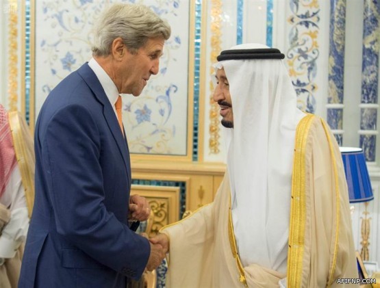 استقبل خادم الحرمين الشريفين الملك سلمان بن عبدالعزيز في مكتبه بقصر السلام بجدة اليوم (الخميس) وزير الخارجية الأمريكي جون كيري، والوفد المرافق له.