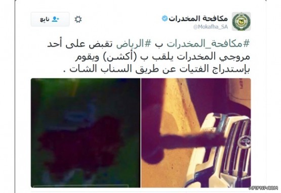 وقالت في تغريدة في حسابها بـ “تويتر”: إن المروج يلقب بـ “أكشن” ويستدرج الفتيات عبر سناب شات.