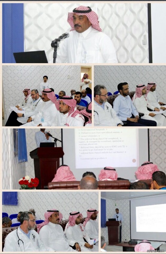 عقد مستشفى الرفايع بالجمش العام اليوم الخميس الموافق ١٤٣٨/١/١٩ ورشة عمل بقاعة المحاضرات بالمستشفي بحضورسعادة مدير المستشفى الأخصائي / عبدالله الحميدي حيث كانت البدايه كلمة مدير المستشفى وتلى ذلك تقديم محاضرتين عن آلية قبول المرضي في قسم الطب المنزلي و الأهداف العالمية لسلامة المرضي . حيث استهدفت الورشة جميع الكوادر الطبية بالمستشفي من الأطباء والتمريض ورؤساء الاقسام والادارات من فنيين واداريين