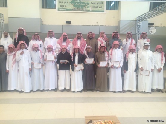 بعد ذلك تم تكريم الطلاب المتفوقين بمشاركة اولياء امورهم وذلك بتخفيض ألف ريال للطالب الحاصل على الترتيب الاول من كل فصل ومبلغ خمس مائة ريال للطالب الحاصل على الترتيب الثاني وجوائز عينية لبقية المتفوقين .