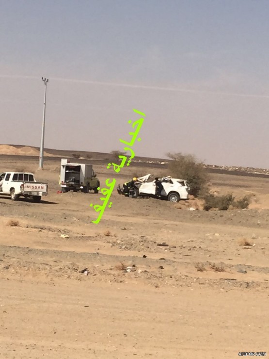 توفي شخصان اثر حادث مروري وقع شرق عفيف عند الساعة العاشرة صباحاً بالقرب من مفرق الحنابج اثر تصادم مركبتين وجهاً لوجه من نوع داتسون وجيب تويوتا.