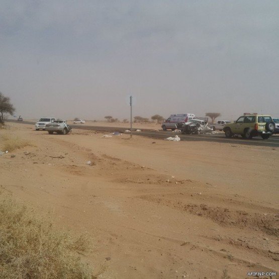 وقع صباح اليوم الأربعاء حادث مروري شنيع على طريق وادي المياه شرق عفيف ، بين مركبتين الأولى كامري من نوع تويوتا والأخرى من نوع هايلوكس تويوتا وجها لوجه حيث توفي على اثره رجل امن يعمل بمركز امن الطرق بعفيف في العقد الثالث من عمره ، واصابة اخر باصابة خطيره وسيتم نقله للرياض والاخر اصابته متوسطة ، حيث باشرت الجهات الأمنية والأسعافية مسرح الحادث فقد تم نقل جميع المصابين الى مستشفى عفيف العام بواسطة إسعاف الهلال الأحمر .
