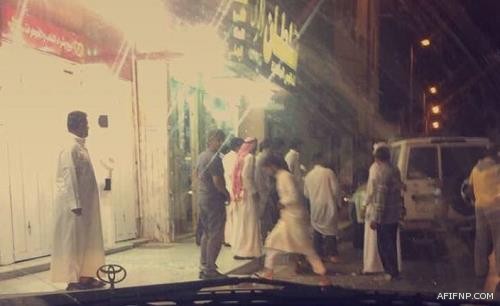 وذكرت المصادر أن رجلاً يرتدي زياً نسائياً دخل إلى المحل، وهدد العاملين فيه بسلاح ناري، وشاهده أحد المارَّة فأبلغ الشرطة، حيث حضر سريعاً الرقيب أول عطالله سويلم الحويطي، ولكن الجاني بادره بإطلاق النار على صدره فتوفى متأثراً بإصابته، كما أطلق الجاني النار على مواطن ووافد عربي وأصابهما قبل أن يفر من الموقع.