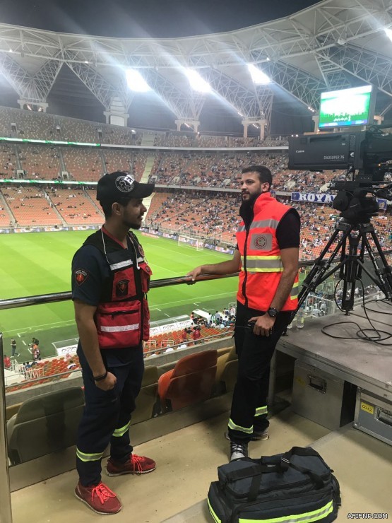 [JUSTIFY]انطلاقًا من حرص الإدارة العامة لهيئة الهلال الأحمر السعودي بمحافظة جدة على توفير خدمات إسعافية تزامنًا مع الأحداث الرياضية، أعلن المتحدث الرسمي لهيئة الهلال الأحمر بمحافظة جدة عبدالله أحمد أبو زيد أنَّ ?الهيئة بالمحافظة شاركت خلال لقاء مباراة الهلال والاتحاد ضمن الدوري السعودي للمحترفين بـ 12 فرقة إسعافية، و32 مشاركاً، لمباشرة أي حالة مرضية أو إصابات أثناء المباراة?.