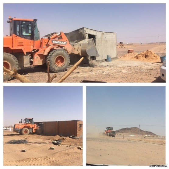 قامت بلدية محافظة عفيف ممثلة بلجنه التعديات بإزالة تعديات على الاراضي الحكومية والاحواش اللغير نظامية باجمالي مساحة 270 الف متر مربع بالمحافظة في أماكن مختلفه .