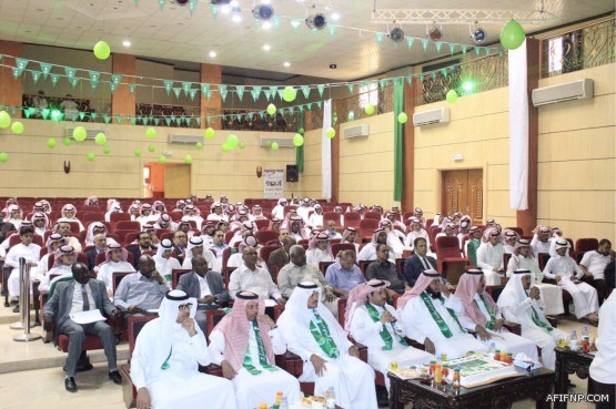 عقب المعرض الحفل الخطابي الذي تنوعت فقراته ما بين القصائد النبطية والمشهد الصامت والمسرحية التي تحكي حب الوطن ، وعرض مرئي يحكي قصة تأسيس المملكة العربية السعودية على يد المغفور له بإذن الله الملك عبدالعزيز رحمه الله ، ثم عقبها أوبريت وطني شارك فيه عمداء كلية التربية الدكتور طلال الشريف وادارة الاعمال الدكتور مطلق الروابي ووكلاء الكلية وأعضاء هيئة التدريس والطلاب .