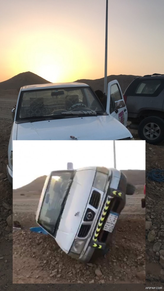 تعرض عامل آسيوي يعمل بائع في احد المفروشات بمحافظة عفيف لاصابات طفيفه إثر تعرض مركبته لحادث انقلاب على طريق الدائري الشمالي بالقرب من الثامرية الخاضع للعمل من قبل البلدية اثر انحراف مركبته ، فيما قام المواطن عواض معيوض الثبيتي في اخراج قائد المركبه من داخل المركبه واصابته طفيفه ولله الحمد .