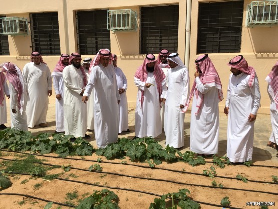 النفيعي إستمع الى شرح مفصل عن المبادرة التي قدمها الأستاذ : عبدالعزيز المتعب أمين مركز مصادر التعلم بإنشاء مشتل زراعي بالفناء الخارجي بالمدرسة ويهدف الى كيفية المحافظة على البيئة والزراعة والتشجير وتدريب الطلاب عملياً .