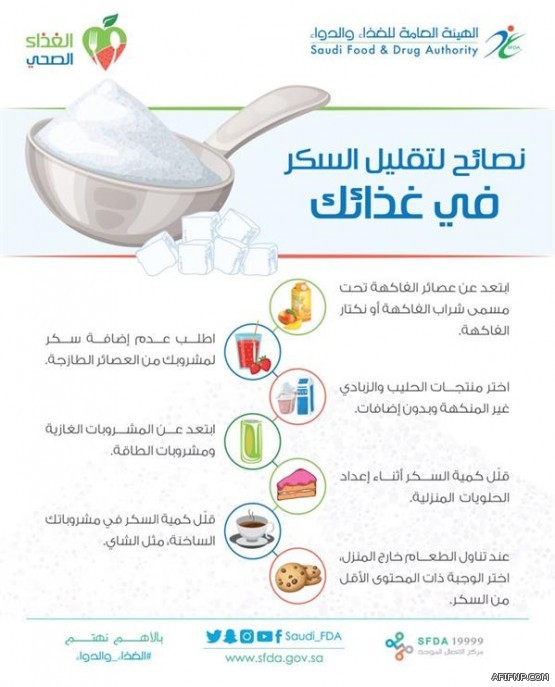 حذرت هيئة الغذاء والدواء من الإفراط في استخدام السكر في الغذاء خاصة في العصائر الطازجة.
