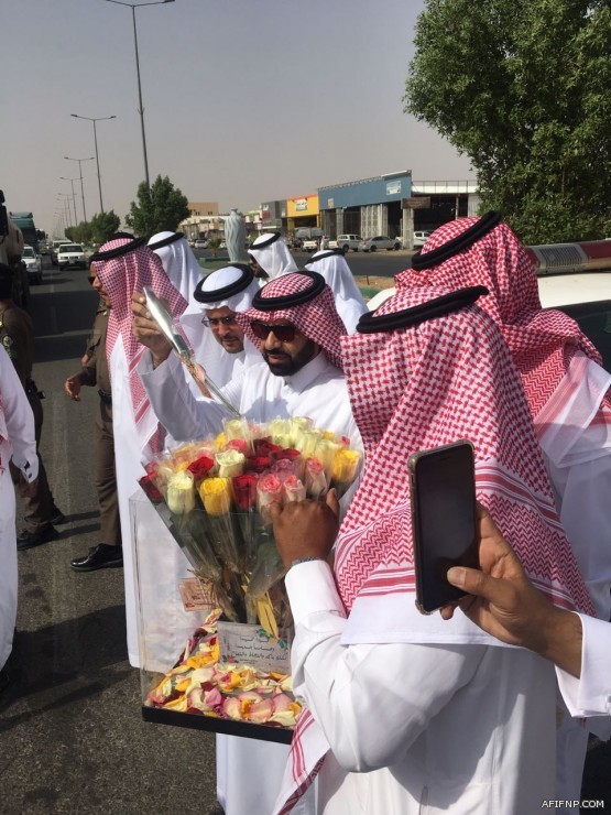 وبروح التفاؤل والنظرة المستقبلية لعام دراسي حافل بالانجازات شارك الزهراني في توزيع الورود والهدايا المقدمه من قسم خدمات الطلاب للمجتمع الخارجي بعد التنسيق مع رجال المرور في عدد من شوارع المحافظة .