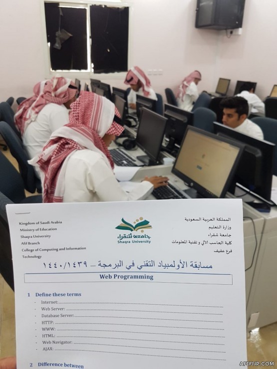 اقامت وحدۃ الانشطۃ الطلابيۃ بفرع كليۃ الحاسب بعفيف اليوم مسابقۃ الاولمبياد التقني في البرمجۃ و قد كان عدد المشاركين ١٣ مشارك اغلبهم من المستوی الخامس و السابع.