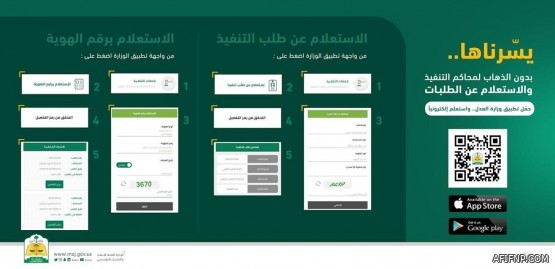 وبيّنت أنّه سيتم التحقّق من هوية وبيانات المستفيد بالربط مع مركز المعلومات الوطني عبر رسالة نصية ترد إليه برقم جواله المسجل في نظام “أبشر”، وسيظهر للمستعلم البيانات المتعلقة بطلب التنفيذ كافة، والمحكمة والدائرة التي أصدرت الطلب، وحالة الطلب وأطرافه، والسندات المتعلقة فيه والقرارات الصادرة بشأنه.