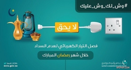 أكدت هيئة تنظيم الكهرباء والإنتاج المزدوج، أنه لا يحق لمقدم الخدمة فصل التيار عن المستهلك خلال شهر رمضان، بحجة عدمم السداد أو تأخير سداد فاتورة الخدمات.