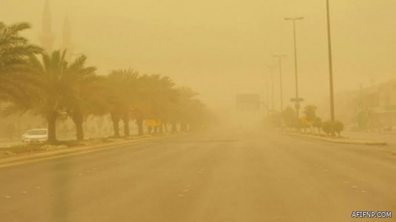 ومن المتوقع أن يستمر نشاط الرياح السطحية المثيرة للأتربة والغبار تحد من مدى الرؤية الأفقية على المنطقة الشرقية والأجزاء الجنوبية من منطقة الرياض، في حين يستمر تأثير العوالق الترابية على منطقة (نجران، المرتفعات الجنوبية الغربية، ومنطقتي مكة المكرمة والمدينة المنورة)، كما تكون السماء غائمة جزئيا على المرتفعات الجنوبية الغربية والغربية تتخللها سحب رعدية ممطرة.