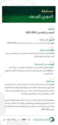 كما ستعمل لجنة المسابقات على استكمال ضوابط ولوائح الدوري الرديف بالتنسيق مع رابطة دوري المحترفين واللجان ذات العلاقة، مع عقد ورشة عمل مع الأندية لاستكمال جميع المتطلبات للبداية المثالية مع موسم 2022-2023.