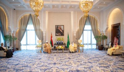 عقب ذلك، عقد خادم الحرمين الشريفين الملك سلمان بن عبد العزيز آل سعود – أيده الله – وصاحب الجلالة السلطان هيثم بن طارق سلطان عُمان، بحضور صاحب السمو الملكي الأمير محمد بن سلمان بن عبد العزيز، ولي العهد نائب رئيس مجلس الوزراء وزير الدفاع، جلسة مباحثات رسمية جرى خلالها استعراض العلاقات الأخوية التاريخية والراسخة بين قيادتي البلدين الشقيقين، وبحث آفاق التعاون المشترك، وسبل تعزيزه وتطويره في شتى المجالات.