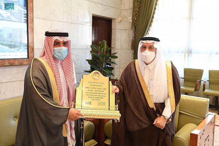 ثم تسلم سموه هدية تذكارية من رئيس مجلس إدارة الجمعية بهذه المناسبة.
