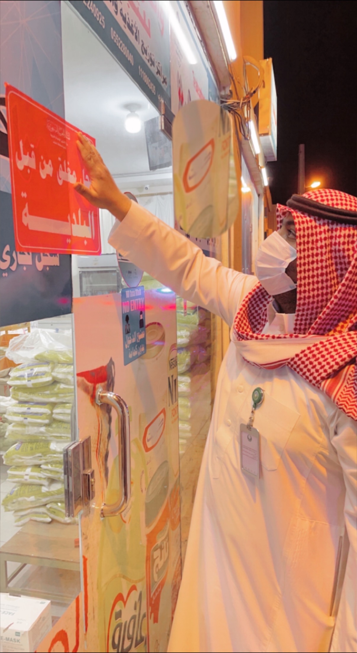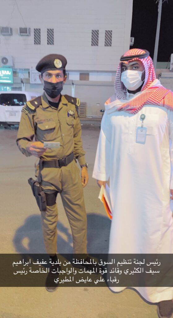 بمتابعة محافظ عفيف الأستاذ : سعد بن محمد بن معمر ، نفذت لجنة تنظيم الأسواق بالمحافظة جولة تفقدية يوم الاربعاء السادس عشر من شهر رجب شملت العديد من الأسواق التجارية بالمحافظة بمشاركة قوة المهمات والواجبات الخاصة، حيث رصدت العديد من المخالفات على عدد من العمالة لمخالفة أنظمة العمل وكذلك إغلاق عدد من المحلات لعدم الالتزام بالاجراءات الصحية الوقائية ومخالفة الانظمة البلدية من حيث النظافة والحالة الصحية للعاملين وعدم وجود شهادات صحية .