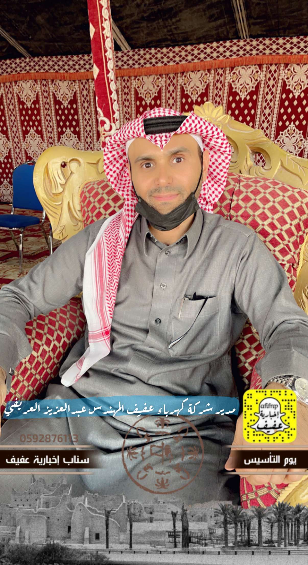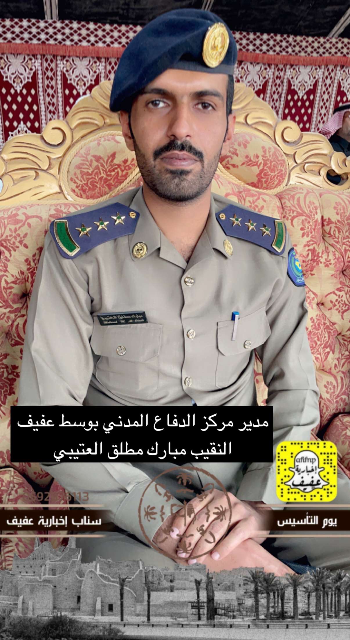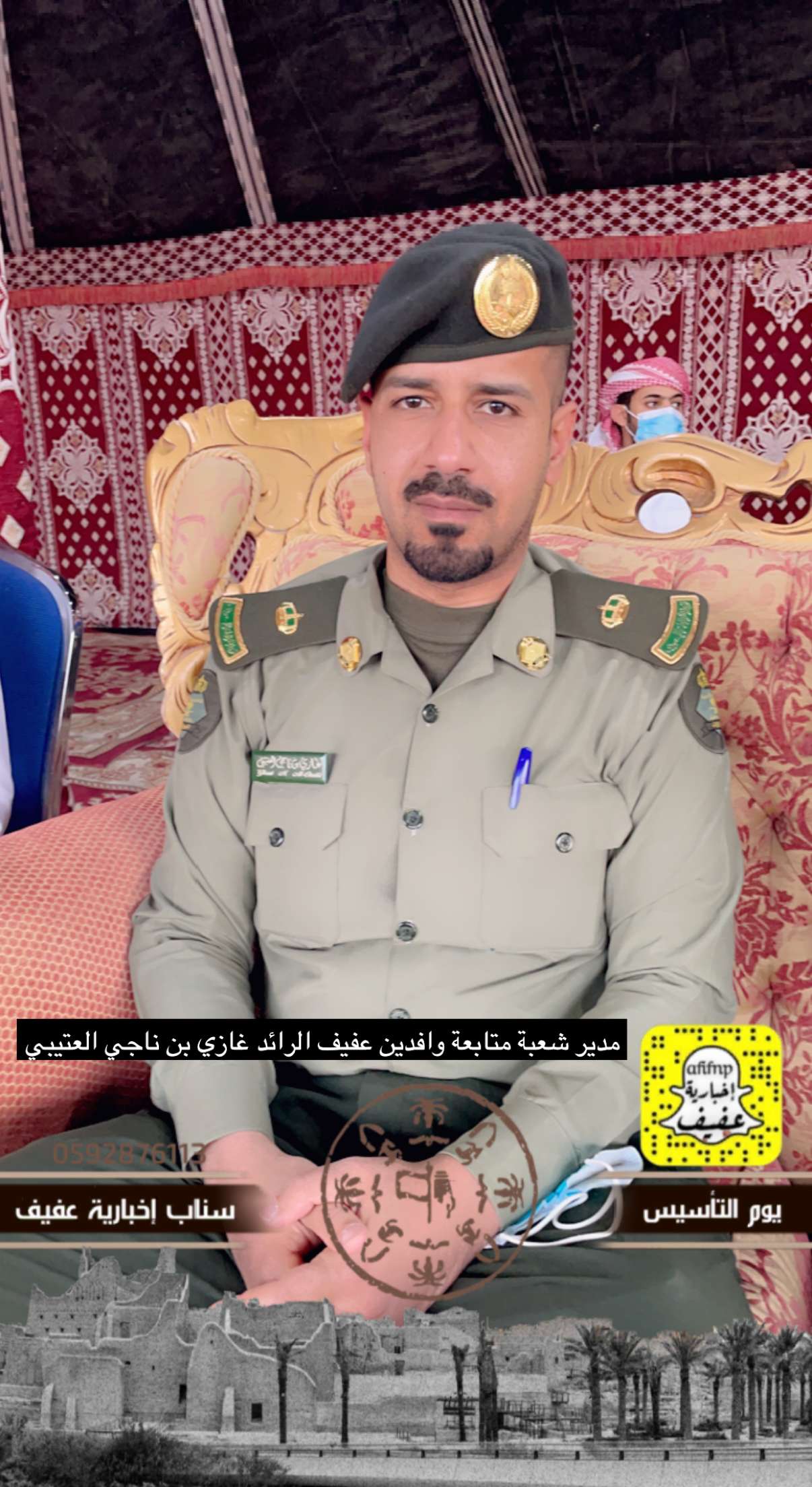 برعاية محافظ عفيف الأستاذ: سعد بن محمد بن معمر، انطلقت فعالياتالاحتفاء بيوم التأسيس بالمحافظة بحضور رؤساء الدوائر الحكوميةالمدنية والأمنية بفعاليات تنوعت ما بين عرض الفنون الشعبية القديمة والفرق الترفيهية