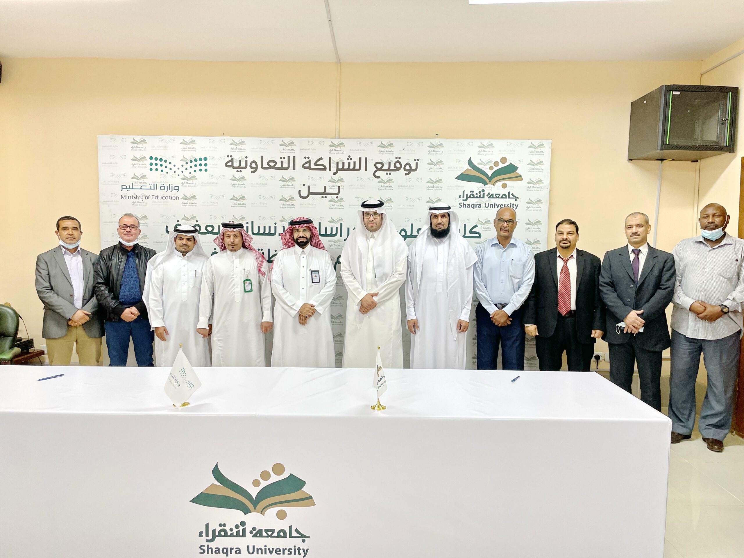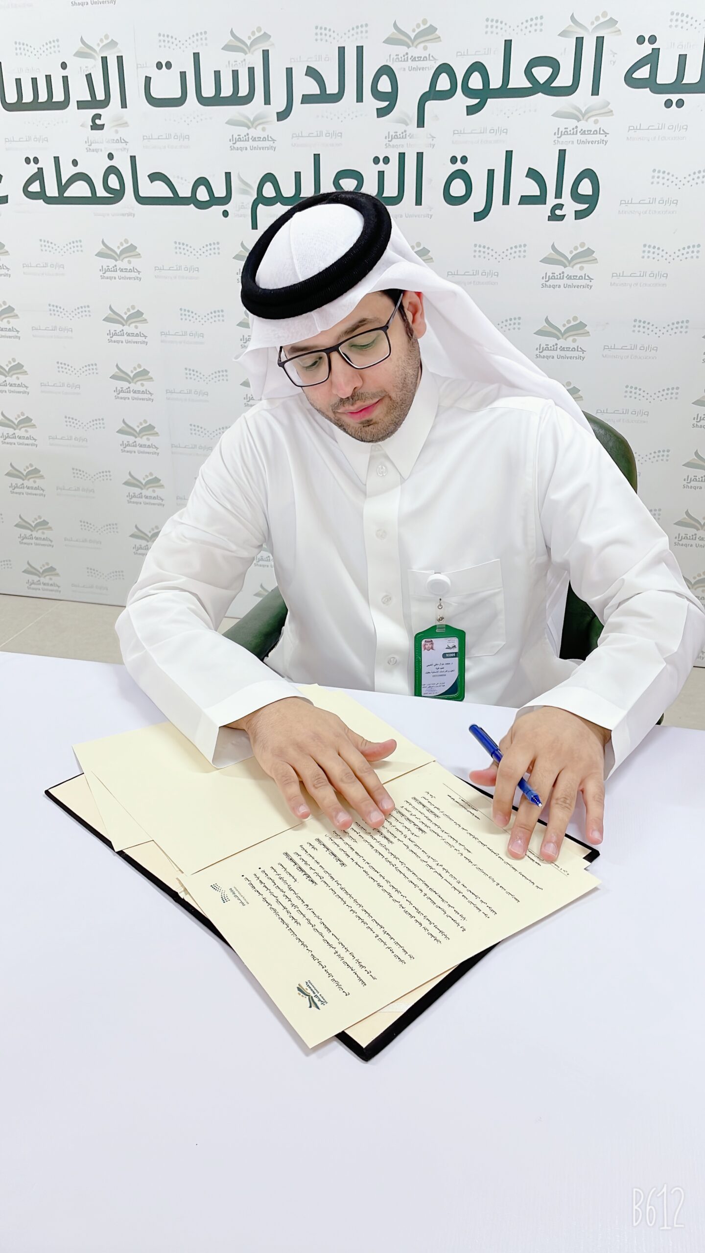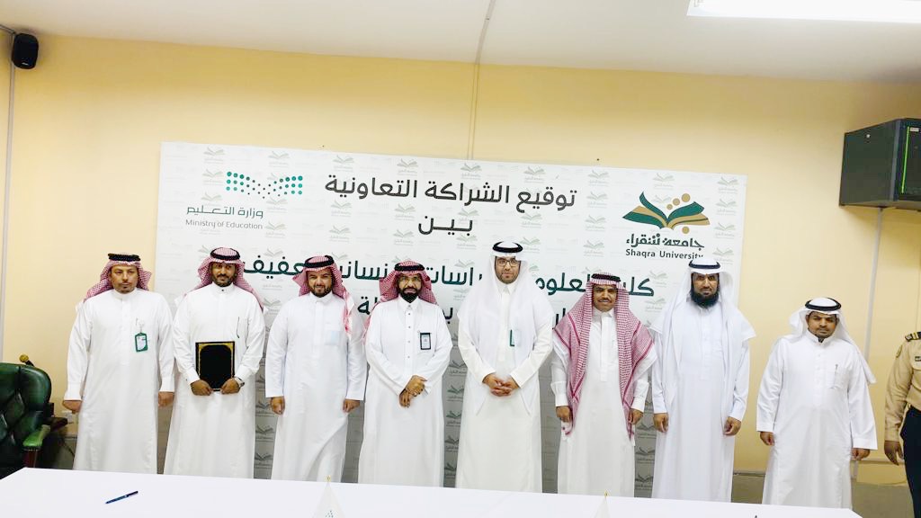 وقد حضر توقيع الاتفاقية الدكتور عبدالرحمن بن عبدالله السميري وكيل كلية العلوم والدراسات الإنسانية والدكتور بدر بن عبدالعزيز المرشدي وكيل كلية ادارة الأعمال ومستشار مدير التعليم الدكتور : صالح شمروخ الروابي ورئيس قسم التوجيه والإرشاد الدكتور: مرشد العازمي ورئيس قسم التخطيط والتطوير الدكتور: عبدالعزيز العضياني والكادر الأكاديمي بالكلية.