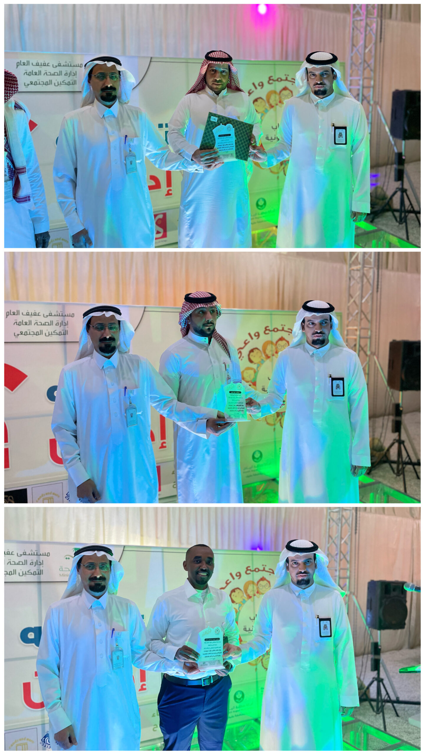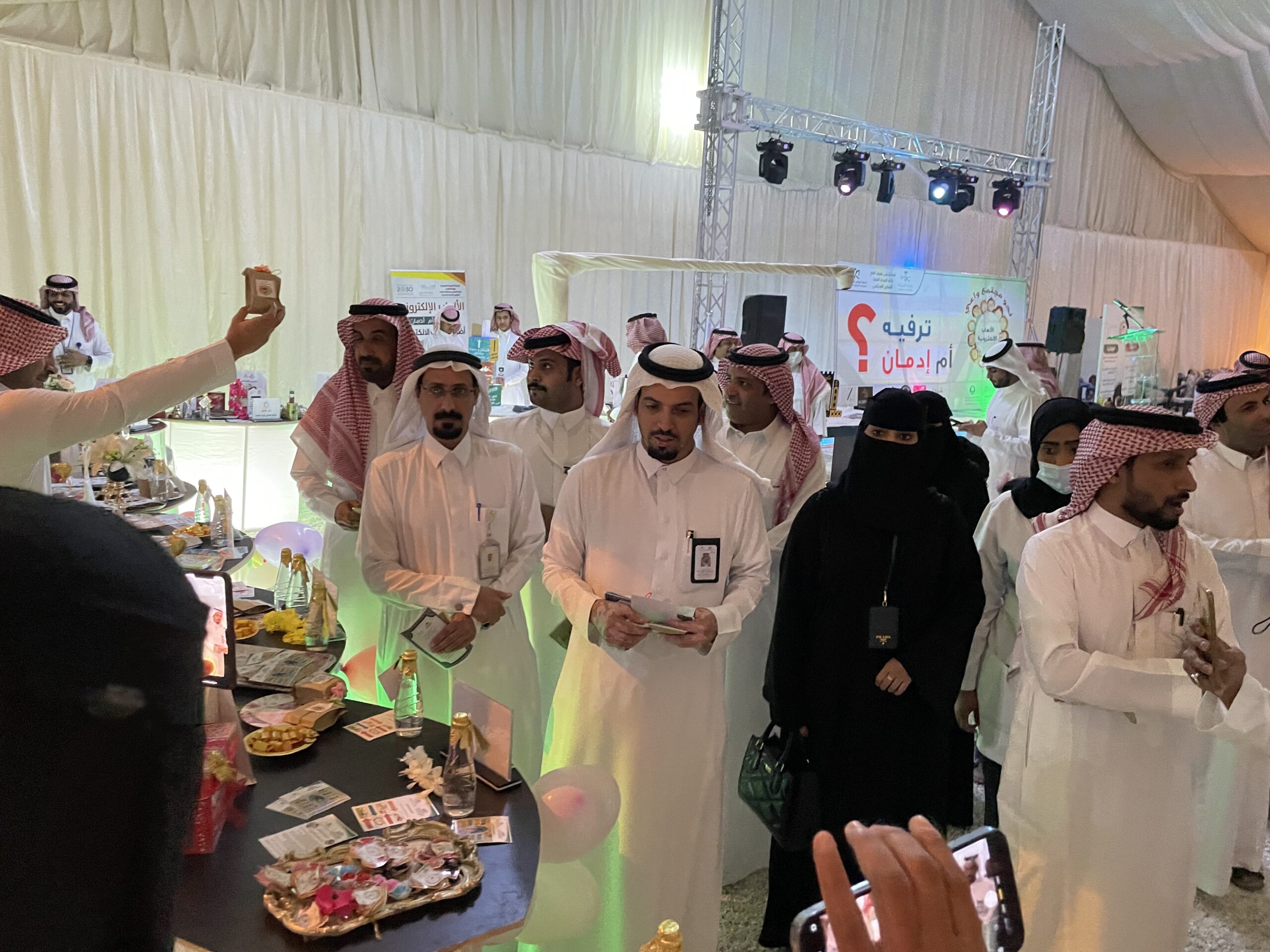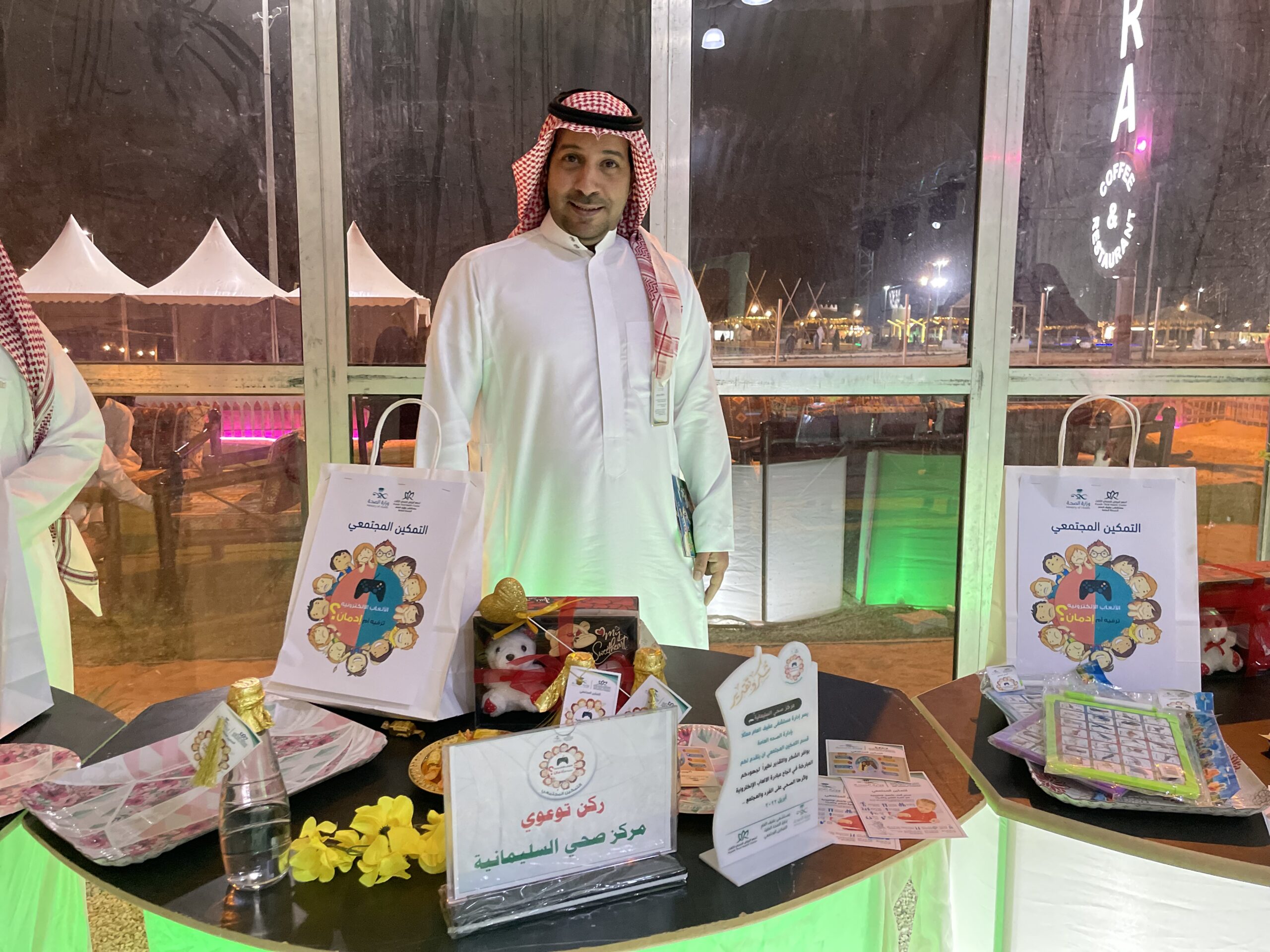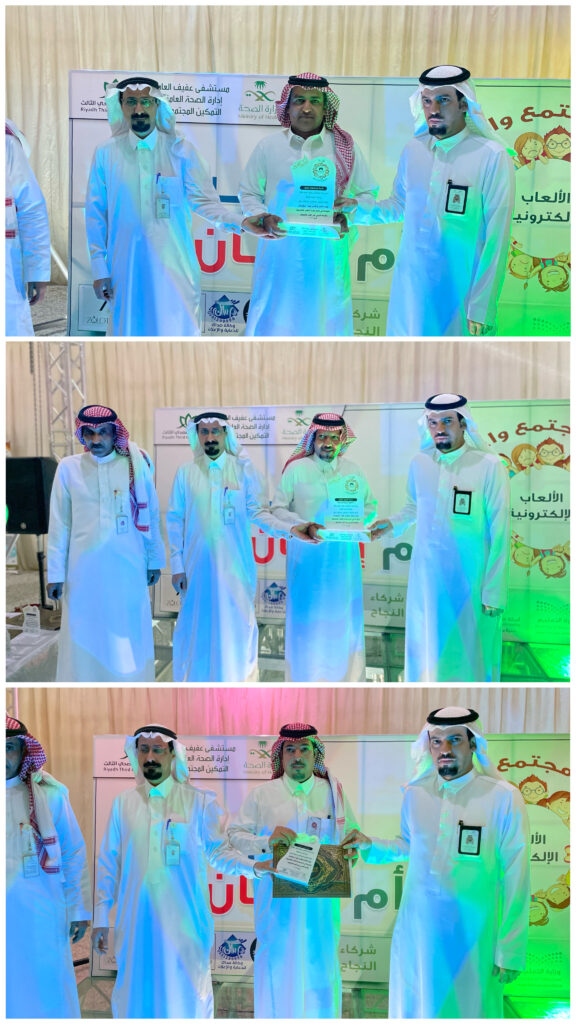 نظم مستشفى عفيف العام ممثلاً بقسم التمكين المجتمعي بقطاع الرعاية الصحية الأولية حملة التوعية بأضرار الألعاب الإلكترونية والتي اطلقت تحت شعار ” الألعاب الألكترونية .. ترفية أم ادمان ” وذلك بمهرجان بهجة الترفيهي بمنتزة المطار ، حيث دشن مدير مستشفى عفيف الأستاذ فهم بن ماضي المغيري حفل انطلاقة الحملة والذي ابتدأ بكلمه أوضح فيها استشاري الامراض النفسية الدكتور محمد يوسف ان استخدام الألعاب الإلكترونية بمختلف أنواعها يسبب العديد من المشاكل الصحية للفرد والأطفال على وجه الخصوص فعند ممارسة الألعاب الإلكترونية بشكل مكثف يومياً قد يؤثر ذلك على تفاعله مع الآخرين وقد يميل الطفل للانطواء مما يؤثر على قدراتهم في المستقبل و قد يتعرض الطفل إلى الفشل الدراسي وعدم التحصيل الجيد ، وأضاف أن الألعاب الإلكترونية تتسبب في تغير سلوك الطفل إلى العنف والعصبية الزائدة ، وهذا لوجود العديد من الألعاب العنيفة التي تجعل الطفل أكثر عدوانية ، وقد يصل الفرد بمرحلة الإدمان ما يجعل من الصعب التخلي عنها فيؤثر سلباً على صحة الطفل بشكل كبير ويؤدي الى القلق والتوتر الدائمين وعدم الرغبة في التحدث مع الأخرين ، كما صاحب الفعالية العديد من البرامج ومن ضمنها أركان توعوية وعروض مسرحية للأطفال ومحاضرات طبية مخصصة للأطفال وأولياء الأمور تهدف الى تعزيز نشر ثقافة التوعية بأضرار الألعاب الإللكترونية ، كما اوضح مساعد مدير الرعاية الصحية الأولية الاستاذ فيصل ابو ثنتين خلال كلمته ان الحملة ستستمر لمدة 3 أشهر بمشيئة الله تعالى وسنستهدف من خلالها إلى الوصول إلى أكبر عدد ممكن من فئات المجمتع في مدارس التعليم العام والجامعات والمجمعات التجارية لرفع درجة تعزيز الوعي الصحي بمخاطر واضرار الألعاب الإلكترونية على صحة الفرد والمجتمع .