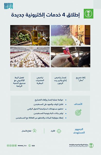 يُذكر أن الخدمات الإلكترونية التي تطلقها وزارة البيئة والمياه والزراعة بشكل متواصل تأتي في إطار خطة التحول الرقمي للوزارة في قطاعات المنظومة، وتستهدف تقليل الوقت والجهد على المستفيدين، إضافة إلى تحقيق مستهدفات إستراتيجية التحول الرقمي، وإتاحة أكبر عدد من الخدمات الإلكترونية لتقليل زيارة فروع ومكاتب الوزارة وتقليل من العمل الورقي ورفع جودة الخدمات ومعاييرها