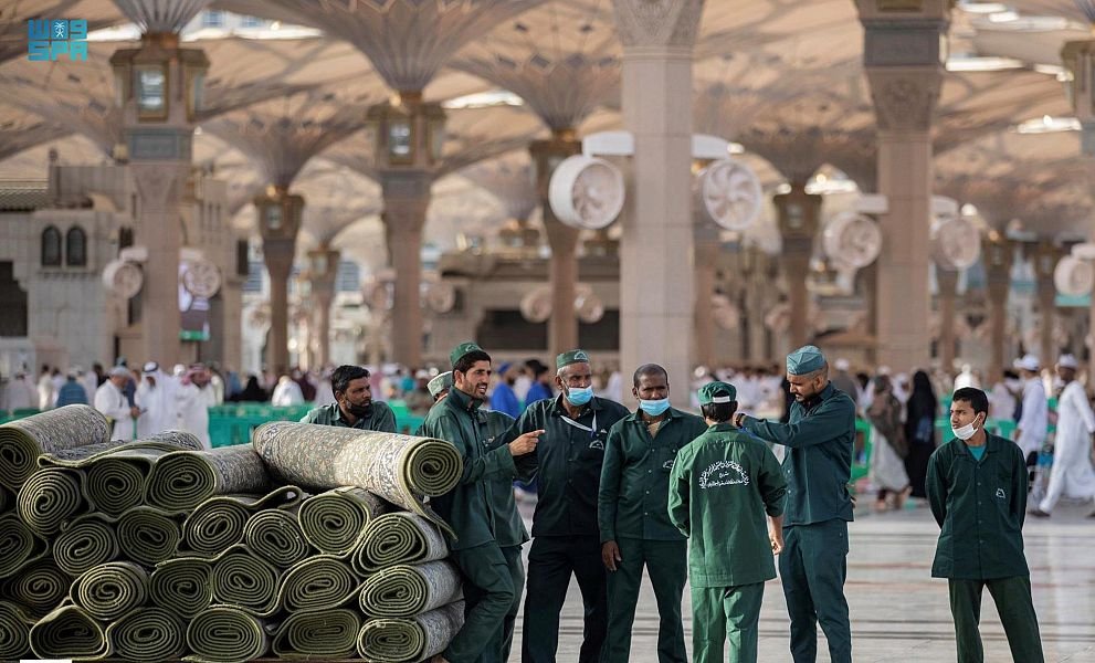 وبين مدير إدارة السجاد برئاسة المسجد النبوي أن إجمالي عدد السجاد (25,000) سجادة بمختلف المقاسات , تُغسل بثمان مراحل ، أولاً التطرق عن الغبار وغمرها بالماء وغسيلها والتجفيف الحراري ووضعها تحت أشعة الشمس وتعقيمها وتطهيرها، وتستغرق عملية الغسيل والتعقيم والتطهير للسجادة الواحدة من 48 إلى 72 ساعة، ومن ثم تغليفها وإعادتها للمسجد النبوي.، مؤكداً حرص الوكالة على العناية والاهتمام بمسجد رسول الله من خلال تقديم خدمات متميزة ضمن الأعمال التطويرية التي تقدمها الوكالة للارتقاء بالخدمات المبذولة في المسجد النبوي، وتذليل العقبات كافة، تسهيلاً على الزائرين بما يتوافق مع خطة رئاسة الحرمين 2024، ولتحقيق تطلعات ولاة الأمر – حفظهم الله -.
