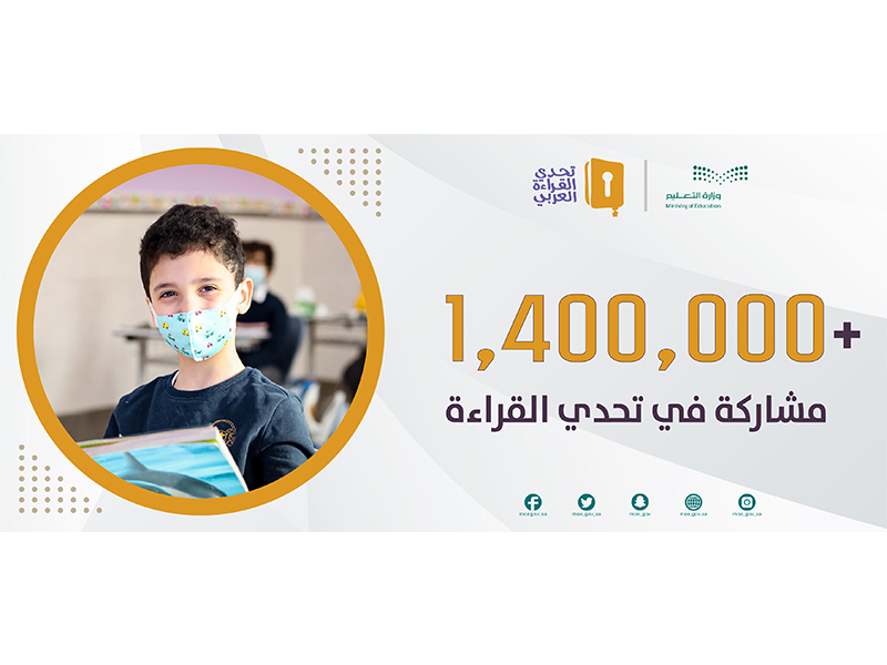 أعلنت وزارة التعليم عن مشاركة أكثر من مليون وأربعمائة ألف طالب وطالبة من كافة مراحل التعليم العام في مشروع تحدي القراءة العربي في دورته السادسة، وذلك من خلال تسجيل بيانات الطلبة في الموقع الإلكتروني الخاص بالمشروع.