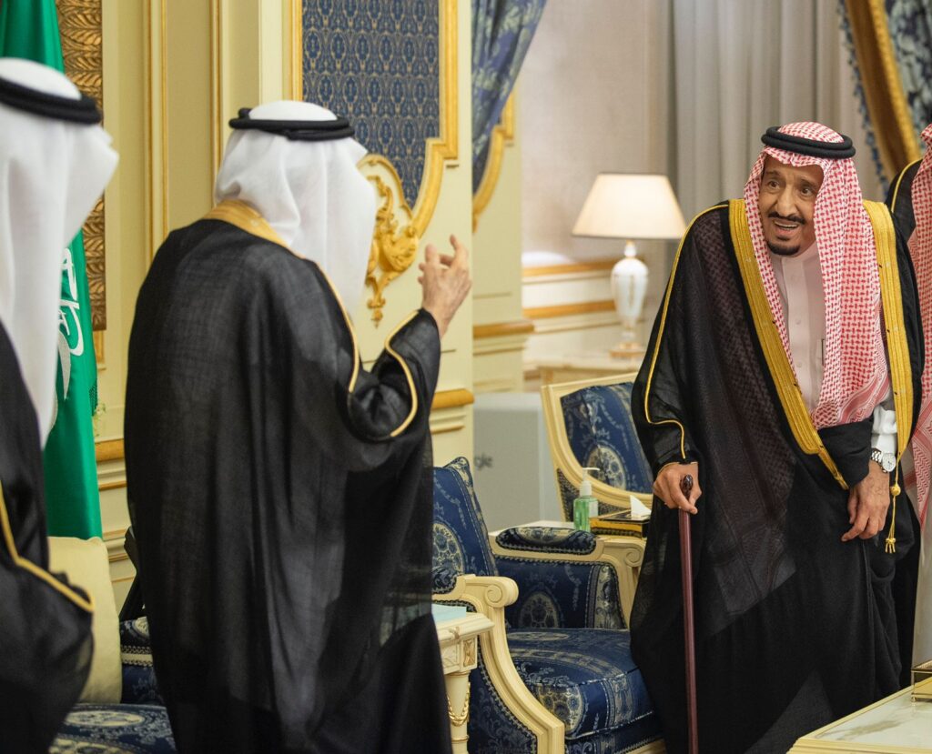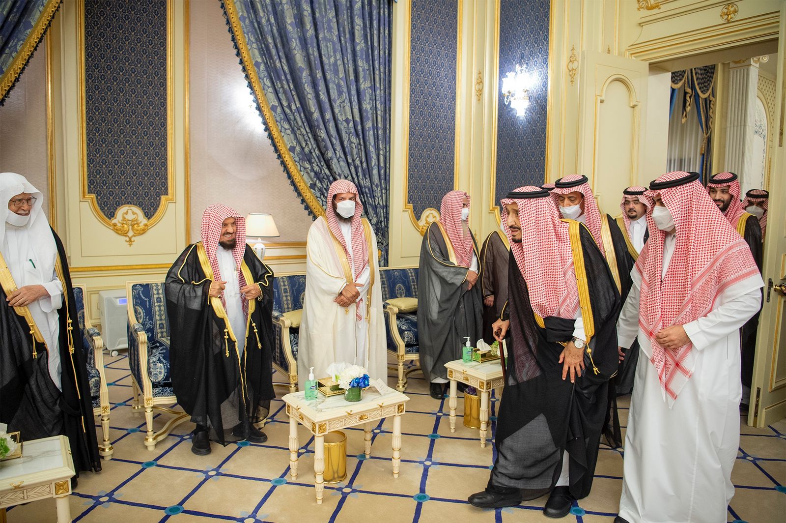 استقبل خادم الحرمين الشريفين الملك سلمان بن عبدالعزيز آل سعود – حفظه الله -، بحضور صاحب السمو الملكي الأمير محمد بن سلمان بن عبدالعزيز ولي العهد نائب رئيس مجلس الوزراء وزير الدفاع، اليوم، أصحاب السمو الأمراء، وأصحاب الفضيلة العلماء والمعالي، وجمعاً من المواطنين الذين قدموا للسلام عليه – رعاه الله-.