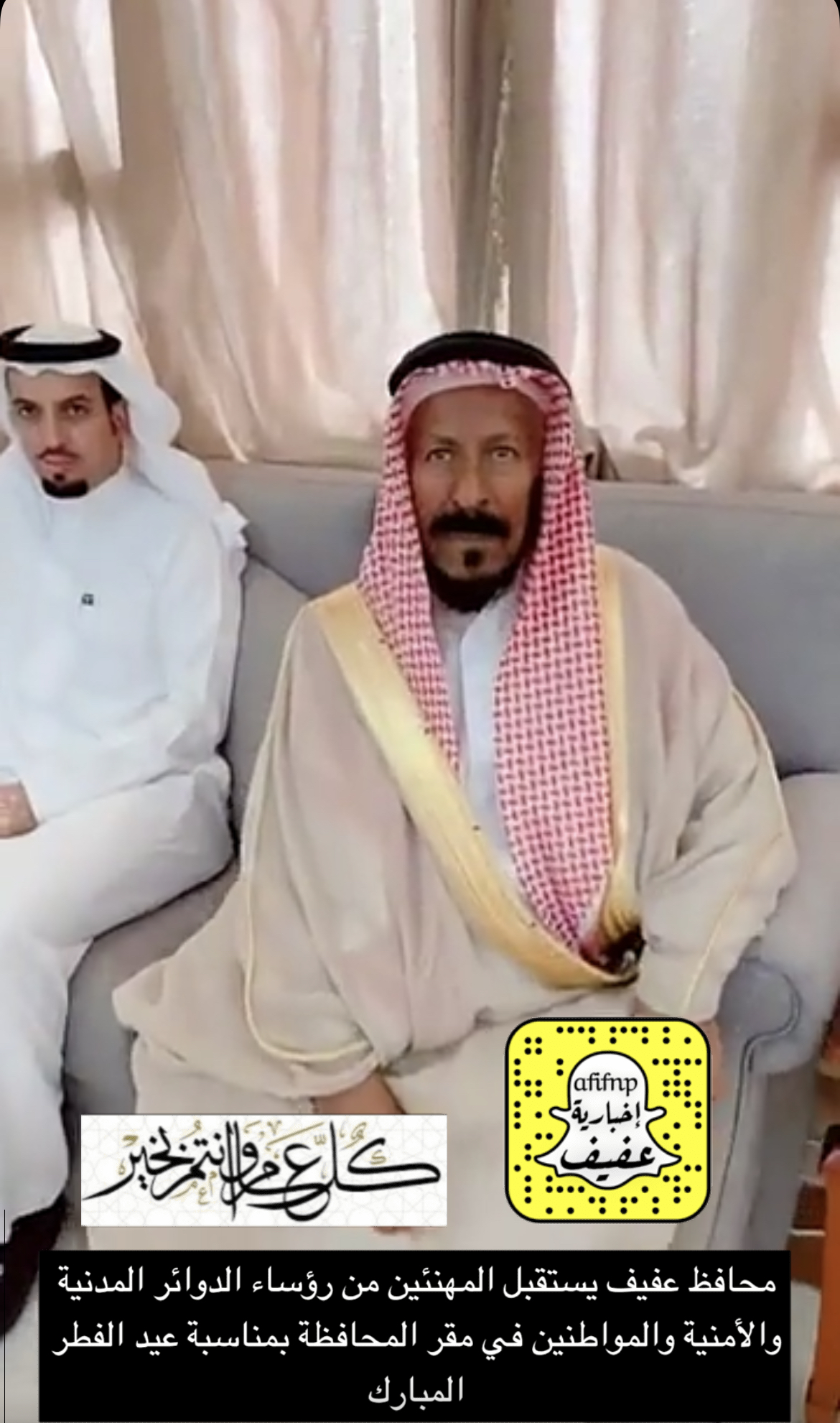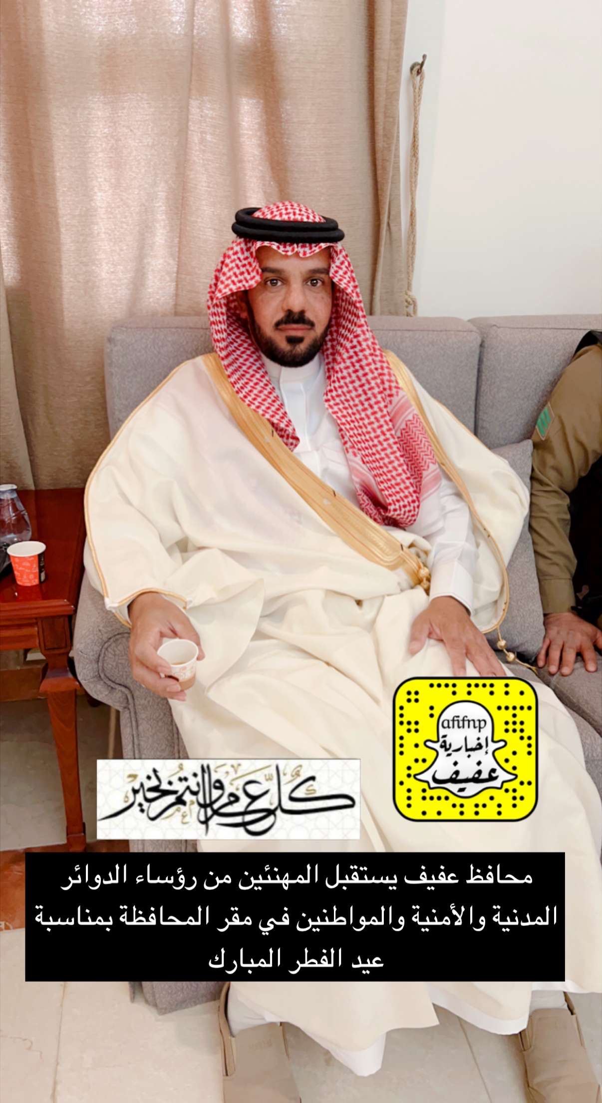 استقبل محافظ عفيف الأستاذ : سعد بن محمد بن معمر بمقر المحافظة اليوم المهنئين بمناسبة عيد الفطر المبارك .