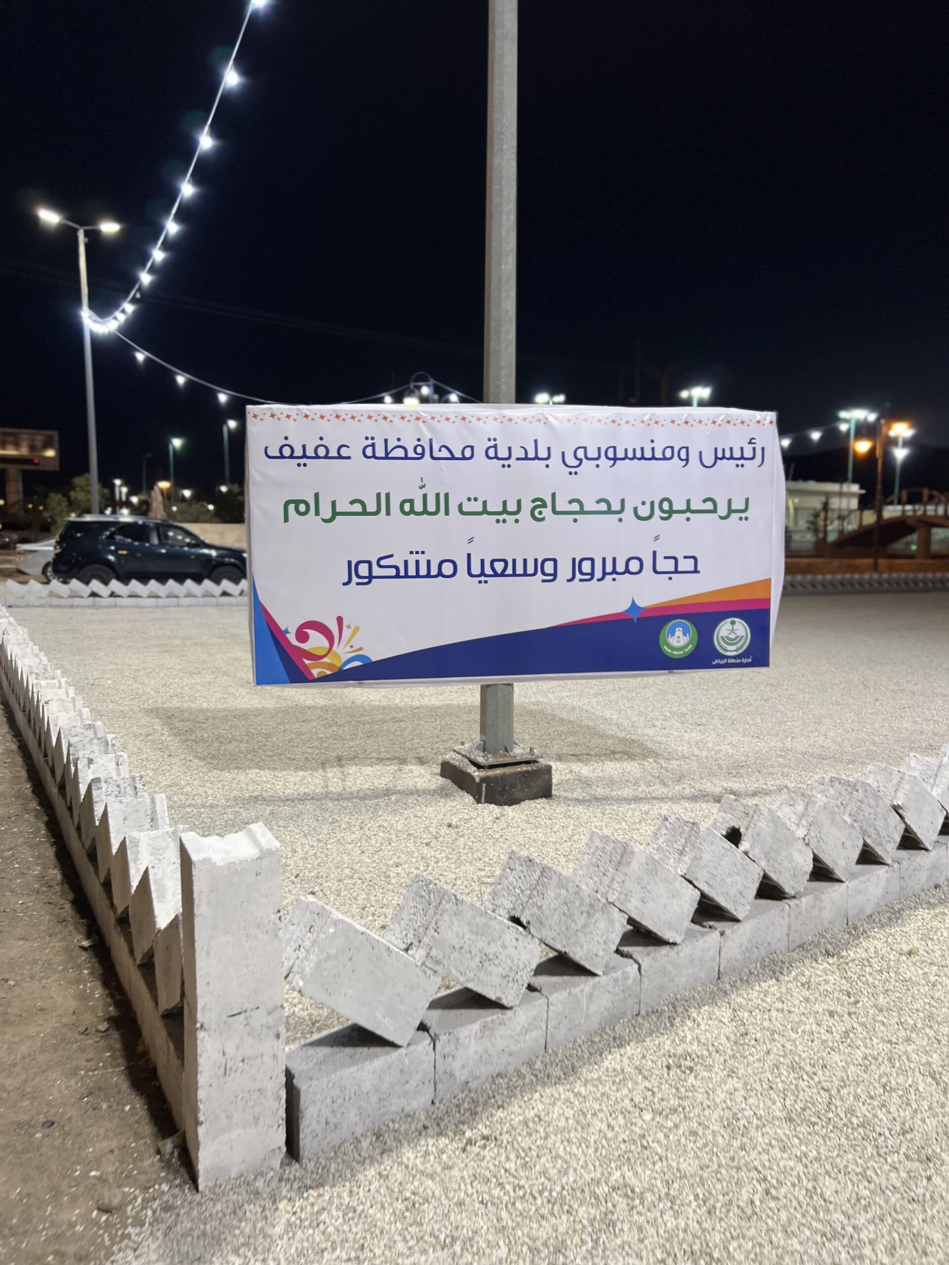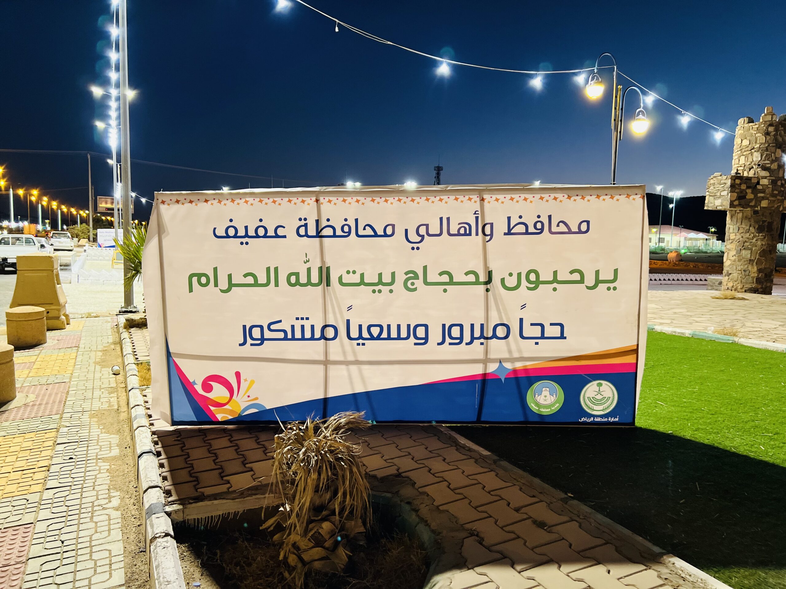 بمتابعة محافظ عفيف الأستاذ : سعد بن محمد بن معمر؛ أنهت بلدية المحافظة برئاسة المهندس : حسين مبارك السبيعي تجهيزاتها لاستقبال ضيوف بيت الله الحرام ضيوف خادم الحرمين الشريفين من جميع أنحاء العالم والمناطق والمدن والمحافظات السعودية، وذلك أثناء مرورهم بالمحافظة كآخر نقطة في حدود منطقة الرياض .