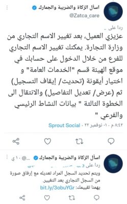 أوضحت هيئة الزكاة والضريبة والجمارك، خطوات تغيير الاسم التجاري للفرع من خلالها، وذلك بعد تغيير الاسم عن طريق وزارة التجارة.