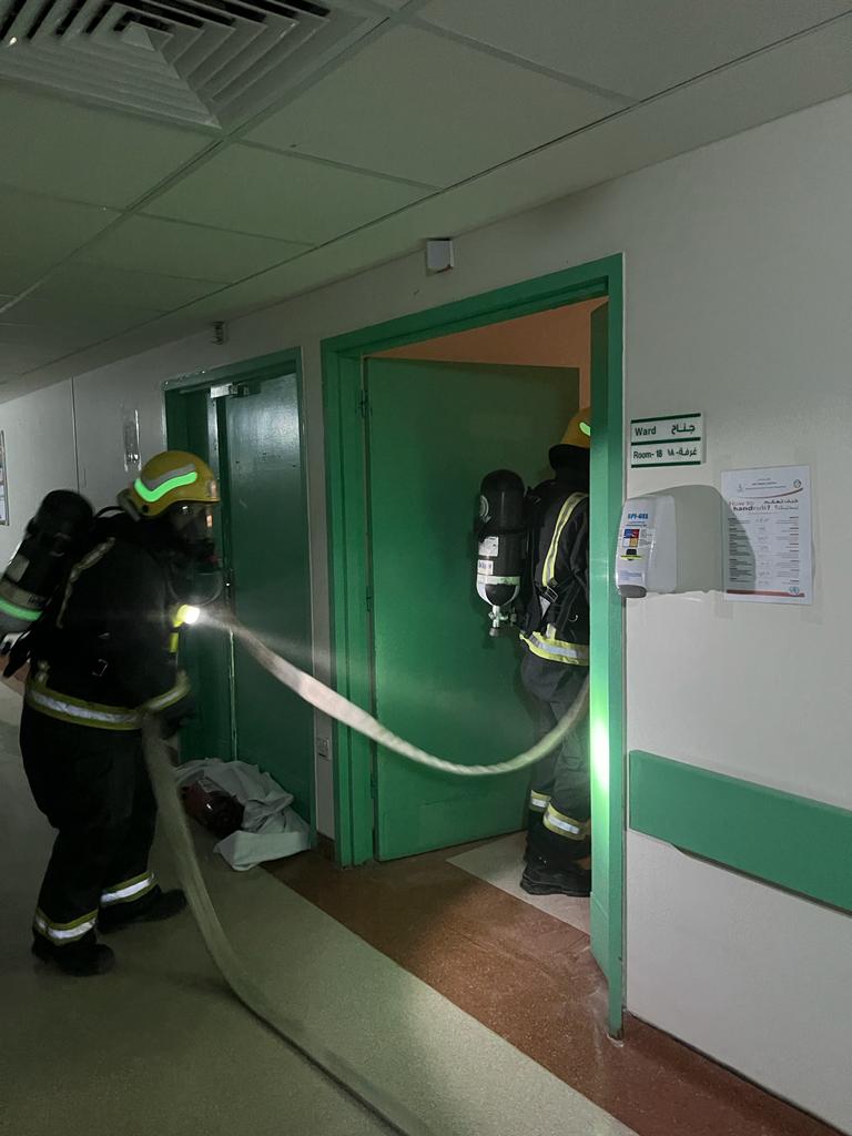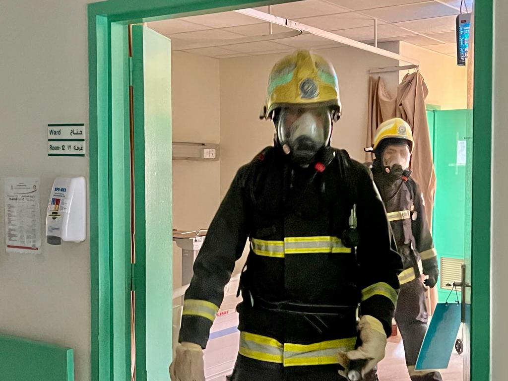 من جهته بين مدير مستشفى عفيف أ.فهم بن ماضي المغيري أن سيناريو الفرضية تضمن نشوب حريق بقسم التغذية جراء إلتماس كهربائي مما تسبب في انتشار الدخان في أجزاء من المبنى الرئيسي للمستشفى حيث تم رفع البلاغ من قبل الكوادر الفنيه بالقسم مباشرةً، وتم إعلان حالة الطوارئ code red عند الساعة 10:00 صباحاً وتم على الفور البدء في عملية الإخلاء الجزئي للمراجعين والعاملين من القسم حتى وصولهم إلى نقطة التجمع الرئيسية، وخلال ذلك تم إبلاغ الدفاع المدني عند الساعة 10:01 صباحاً حيث بدئت فرق الدفاع المدني بالوصول وتمت عملية الإطفاء والسيطرة على الحريق دون أي إصابات وتحريز الموقع كلياً.