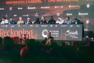 وشارك في المؤتمر الملاكم جاي أوبيتايا، والذي عبر عن حماسه لوجوده في الرياض لهذا النزال المهم، وأن اسمه سيلمع بسبب هذه اللية، مضيفًا: “هذه فرصة كبيرة لي، وهذه المواجهة ستكون حاسمة لإيليس زورو، عليه أن يأتي للحلبة بأفضل ما لديه لأنني متأكد من قدراتي، ستكون ليلة السبت ليلة استعراض المهارات” وأضاف: “لدي العديد من الأهداف التي أود تحقيقها، ولكن عليّ أن أهزم عدة أشخاص قبل الوصول لها”. وأضاف أليس زورو من جهته: ” ليس لدي ما أخسره هنا وأنا واثق من قدراتي جدًا، رغم الضغط الكبير الذي عادة ما يواجه الملاكمين قبل خوض مثل هذه المواجهات، إلا أنني مستمتع جدًا بوقتي ولا أفكر بالخسارة أبدًا”.