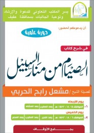 ينظم المكتب التعاوني للدعوة والإرشاد وتوعية الجاليات بمحافظة عفيف علمية بعنوان ( شرح كتاب الصيام من منار السبيل ) والتي ستقام بجامع الأوقاف بعد صلاة المغرب لفضيلة الشيخ مشعل رابح الحربي