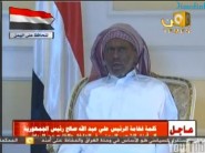 ظهر الرئيس اليمني علي عبد الله صالح في التلفزيون يوم الخميس لأول مرة منذ تعرضه لمحاولة اغتيال الشهر الماضي وقال انه يرحب باقتسام السلطة ما دامت تتم في إطار الدستور اليمني.