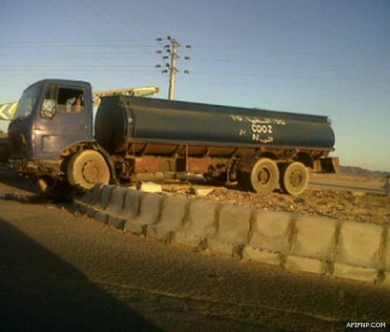 [SIZE=4]وقع قبل قليل 5:00 مساءا , حادث تصادم لمركبتين من نوع (داتسون – صهريج مياه) على شارع الحزام – الدائري الجنوبي- نتج عنه إصابة قائد السيارة الداتسون بإصابت طفيفه وتم نقله عن طريق الهلال الأحمر إلى مستشفى عفيف العام , يذكر ان شدة التصادم أدت إلى ارتطام صهريج المياه واعتلائه الدوار محدثاً به تلفيات , باشر الموقع فرقة من مرور عفيف لتنظيم السير وتقرير الحادث .[/SIZE]