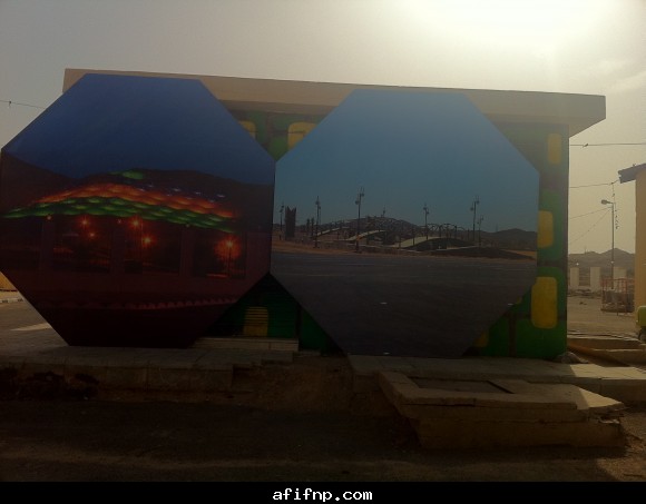 أحد عمال البلدية وهو ينقش اسم الله على نافورة عفيف