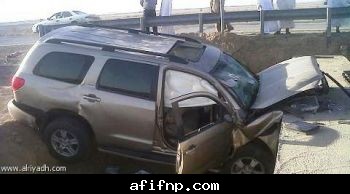 سيارة المربي الفاضل الاستاذ نايف العامر رحمه الله بعد تعرضه لحادث بالقرب من البجاديه